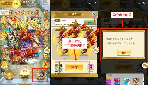 想要更多的兽就去异变,当然不能一直变下去,每天限制次数。幸运值是可以让异变产兽增加的,看下图。