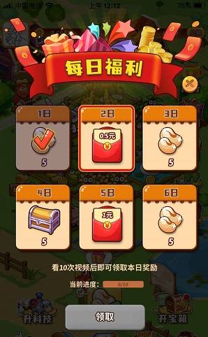 搞完上面的任务,有多余的视频就去【领取金币】,金币可以增加作物数量,达到目标即可收割。
