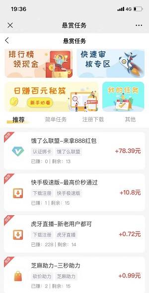 任务多多:包含轻松拉新,每日任务,新手任务,悬赏任务,试玩任务