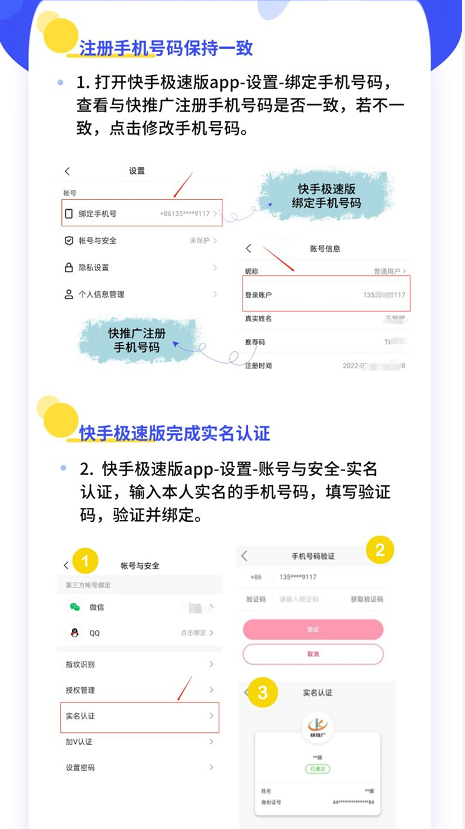 1、打开快手极速版app-设置-绑定手机号码,查看与快推广注册手机号码是否一致,若不一致,点击修改手机号码。