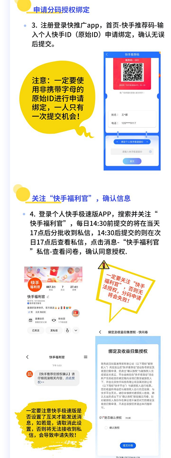 一定要关注“快手福利官”,否则无法授权,分码申请将会失败
