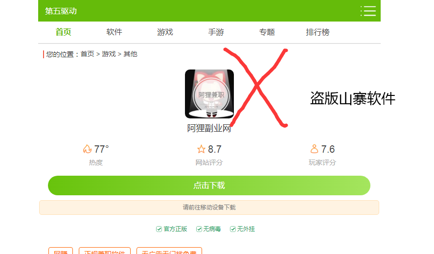 首先阿狸副业网是个网站,而不是APP,并且是知识付费虚拟资源课程的综合站点,而不是其他方面的网站!大家认准,如果界面不是下面这样的,一定山寨盗版!比如上面的就是!
