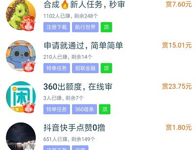 趣闲赚是一个奖励任务赚钱的专业软件,正规可靠,有注册公司。现在已经稳定运行好几年了。休闲赚钱有很多任务,只要每天花一点时间做任务,就可以获得非常丰厚的现金收入,还可以通过邀请朋友赚钱。一般一个任务几块钱,刚开始做赏金任务的时候,一个小时大概能赚20-30元。只要有耐心赚钱,还是挺快的。感兴趣的朋友可以先下载试试。
