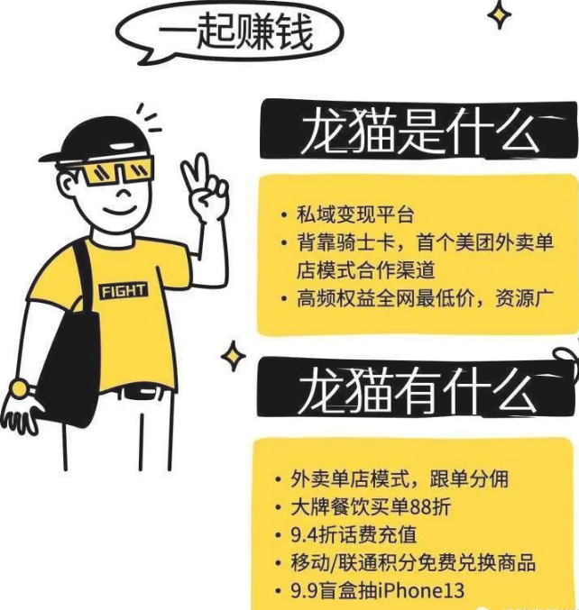 龙猫探店项目,是由美团官方&骑士卡独家合作开发!一次消费2份优惠 2份佣金,这个权限是全网只有龙猫探店才具备的,可以说是独家项目,该项目一出其他各种外卖公众号就显得黯然失色了许多!无论背景还是实际优惠都相距甚远!