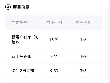 目前对接了“手机天猫APP”这个拉新项目的渠道并不多,其中稳定靠谱,体验和单价最好的是【任推邦APP】,笔者这边对接了首码,价格上会有一定优势目前一单17元左右,提现也是0门槛秒到的。