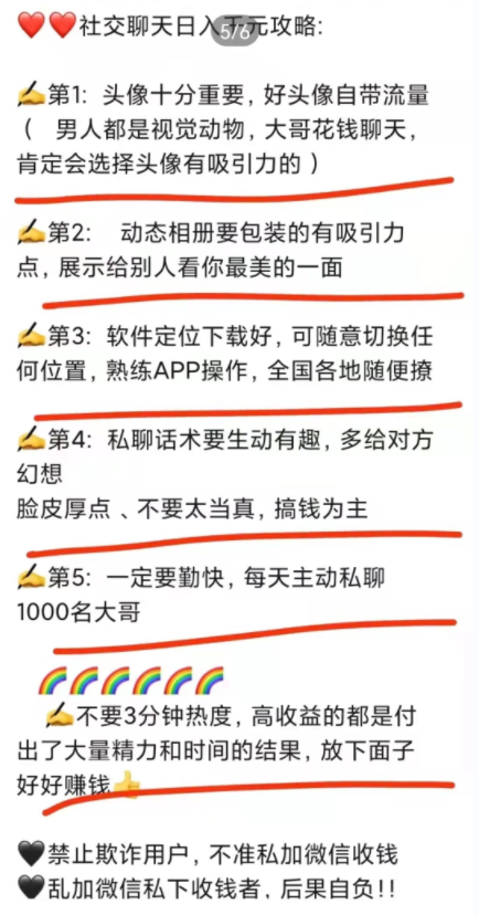 入库完成之后,就可以开始聊天挣钱了,首先得选尽量弄一个漂亮头像,可以让赚钱速度事半功倍!然后完善资料和相册,有时间可以发发动态!最后是设置好一键私聊的功能,然后每天疯狂主动私信即可,过一段时间就做起来了,必须有强大的执行力,因为秀聊是主动私聊机制,每天可以无限量私信!
