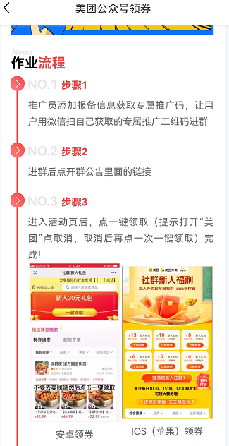 美团社群领券任务怎么做?美团这个任务操作非常简单,就是扫码进群/关注公众号然后美团领券就搞定了(目前任务升级优化了,有后台实时数据反馈而且价格提升,更好做了),不限美团新老用户,操作全程不需要半分钟,一单4元以上,是目前性价比很高的项目,地推和网推都是允许的!
