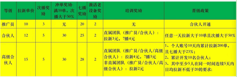 通过这个表格,我们可以很直观的看到快手拉新的规则制度(这个是南方版的,北方版也区别不大),首先推广员价格是很低的,拉新次留只有十几块,七留也不过30多;到了合伙人和高级合伙人七留总收益是45和51元。