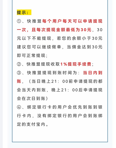 而快推盟提现手续费是1%,其实虽然不是最好的,但还算OK。