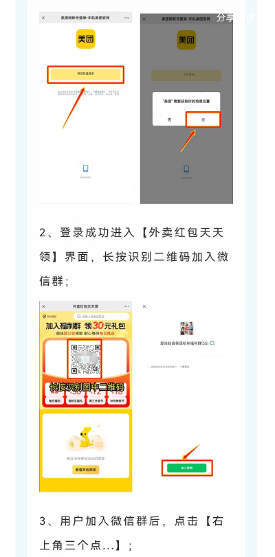 5、不同城市作业流程可能不同,【美团领券】社群领券和公众号领券两种方式,扫描推广码弹出哪种做哪种。