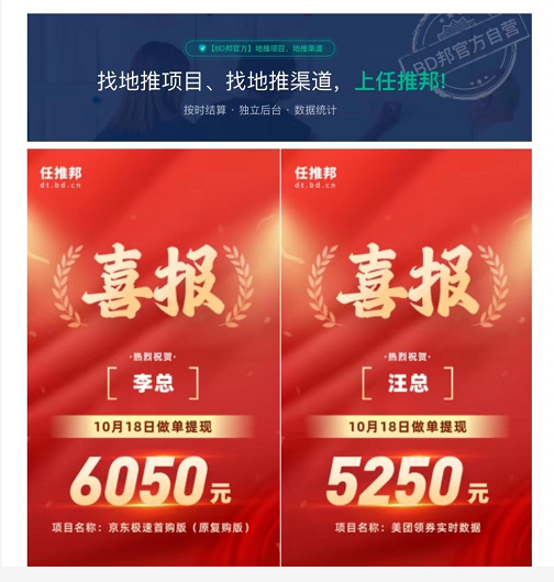 任推邦平台背景靠谱,本身就有专门的服务信息平台官网,旗下还有几个不同类别的软件;平台任务丰富,且多是不限制地推网推的独家项目,数据审核靠谱!如上面截图的美团任务,任推邦是唯一一个可以实时查看数据的渠道,不会扣量而且更方便放单!