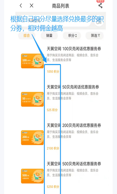 根据积分选最大能兑换的券,积分越多兑换佣金越多,比如5250积分兑换31 佣金