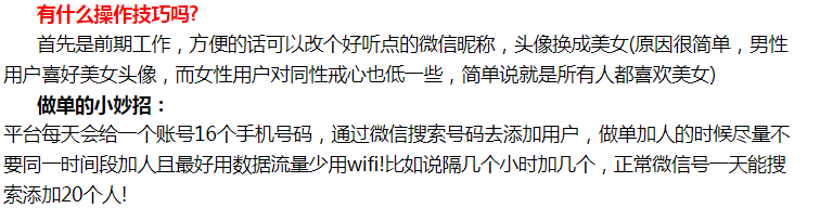 有人说我没有人脉,还能干游戏推广员吗?还真的没有问题,目前旺星猫APP赚钱模式主要有2个,其中一个是发朋友圈推广每天一条一块,这个比较简单只需要你微信有150个好友即可;另外一个则是平台会给你意向客户名单,哪怕不会沟通也可以拿个保底每天10块左右低保!