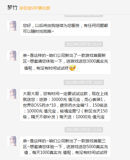 旺星猫做的是推广手机网络游戏,也就是游戏推广员,不过并不需要我们有人脉,人人都能干,目前主要2个方式一个是每天发朋友一天1元,另外一个是平台提供客户名单,我们加上上去推广发话术即可(大概类似下面这种东西)