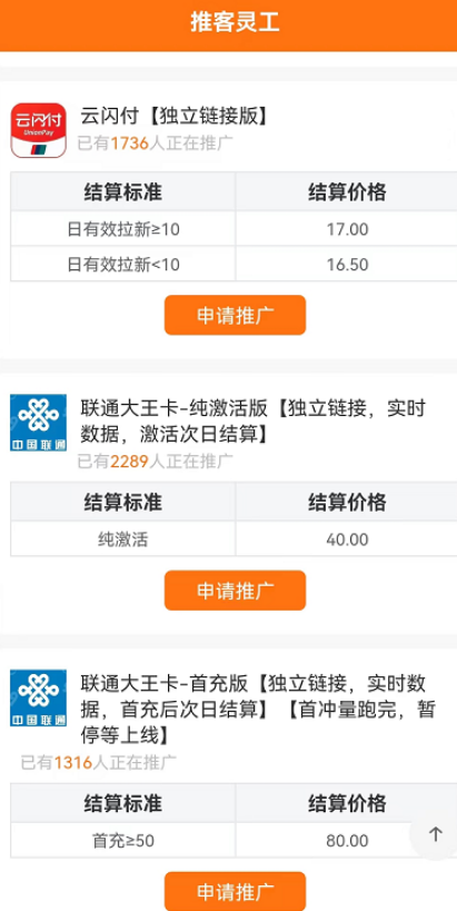 推客灵工APP里面含有大量拉新任务,保守估计都有30款以上,比起很多地推平台的只有几个项目操作起来选择要多出很多,而且很多其实是可以进行网推,那我们就可以放单操作,即便有人可能由于疫情原因不能外出推广,那去悬赏任务平台就可以赚差价,会玩的话效果丝毫不差!