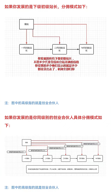 初级站长无法推广团队,而且高级站长可以发展团队,开通高级站长和初级站长;如果下级是初级站长,每出售一单课程赚取其中2元(即6-4的差价),如果是下面也有高级合伙人,则可以获得无限代卖课佣金,分别是5/4/3/2/1个百分比,五级之后都是1%佣金。