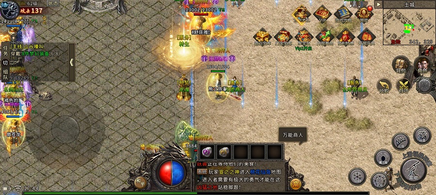 游戏内人物角色选择道士!这个角色打副本最快,升级起来每天领金砖奖励!!去土城第一时间找到万能商人兑换礼包码(SVIP666)!