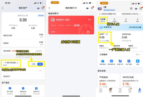 2:进入APP点击我的 点击绑卡并在一户通充值0.1