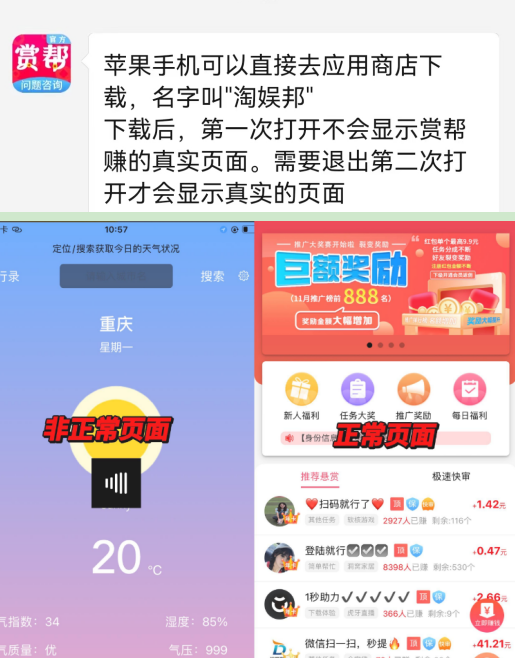 目前这个问题已经得到解决了,苹果版本赏帮赚已经上线--就是淘娱邦APP,名字不同但是内容完全一样就是同款软件!