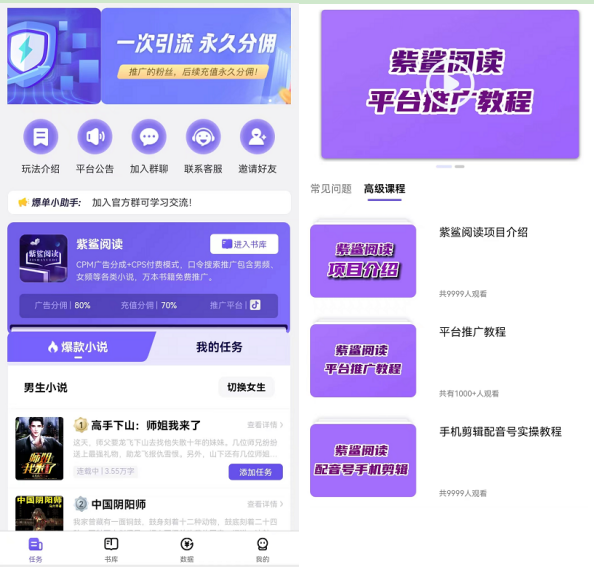 紫鲨阅读全网首发,外面收费几千元的付费课程项目,这里完全免费0投资分享给大家,这个项目目前属于绝对的蓝海项目!