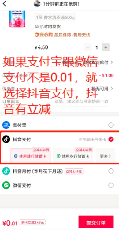 抖音没购物过的新老用户可做(只有没买过的东西的才能最后付款0.01)