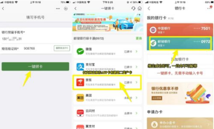 邮政银行绑卡拉新赚钱怎么做?拉新赚钱是真是假?中国邮政银行是国有控股大型商业银行,而这个拉新绑卡的活动主要做的是邮政银行二类户绑定京东APP卡包,每个人理论上可以完成3次利润在21元左右,性价比还是不错的!