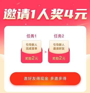 然后新人再邀请好友完成首单,你还有2元的奖励,共计4元的奖励。