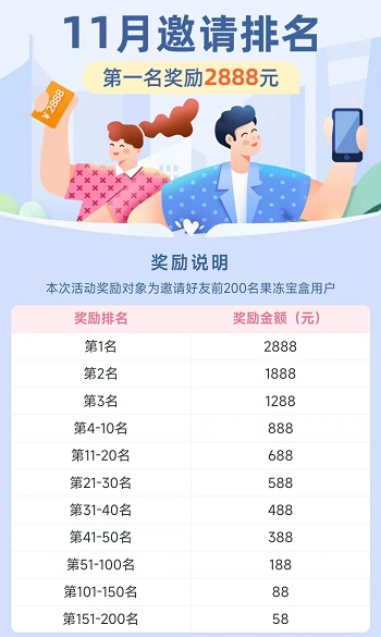 平台每个月都有拉新排行榜,排名越高奖金越多。