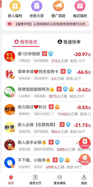 优玖互邦APP靠谱吗?其实优玖互邦就悬赏行业里面如雷贯耳的赏帮赚,当然是非常靠谱的存在了,其实对于行外的人员来说,做悬赏任务在家就能挣钱听起来有点神奇,实际是在正常不过了!真的没什么可以担心,完全0投资免费做任务,而且提现门槛1元,加上平台已经有几百万用户体量,真的可以放心操作,小编本身就接触这类项目好几年了!