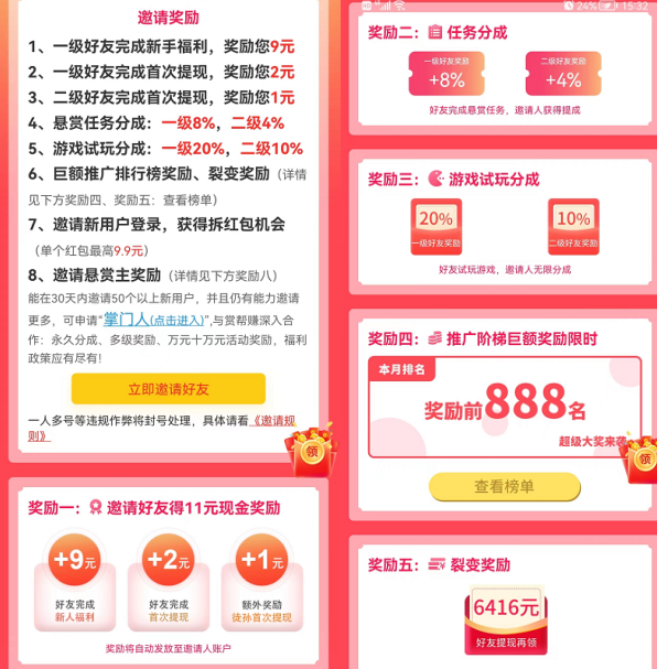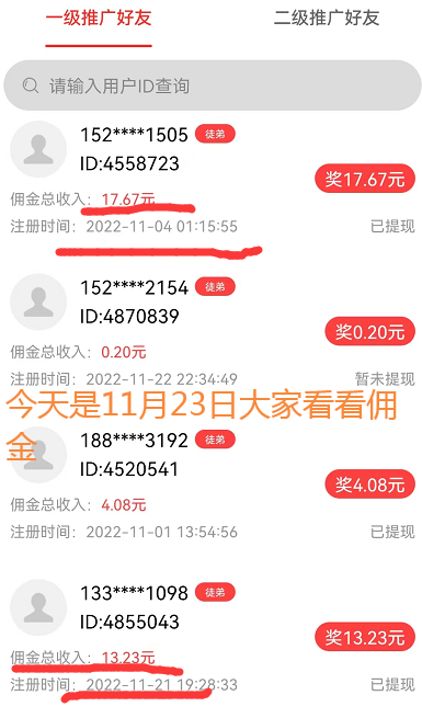 发展团队属于前期费劲但是后期躺赚的方向,不需要每天自己做任务,也不用老是找项目盯着手机放单,但是发展团队需要一定的人脉(或者你需要有引流的思路),淘娱邦(赏帮赚)的推广奖励非常丰厚,除了有直接的2级百分比佣金提成之外,还有大额提现奖励,提现如人数排行榜奖励,掌门人奖励,二级提现人数奖励,商家消费奖励,下级注册红包等等,根据大数据的核算,淘娱邦(赏帮赚)平均推广一个正常用户收益在10元左右,有经验的网友应该有概念,正规项目里这样的利润算是顶流了!