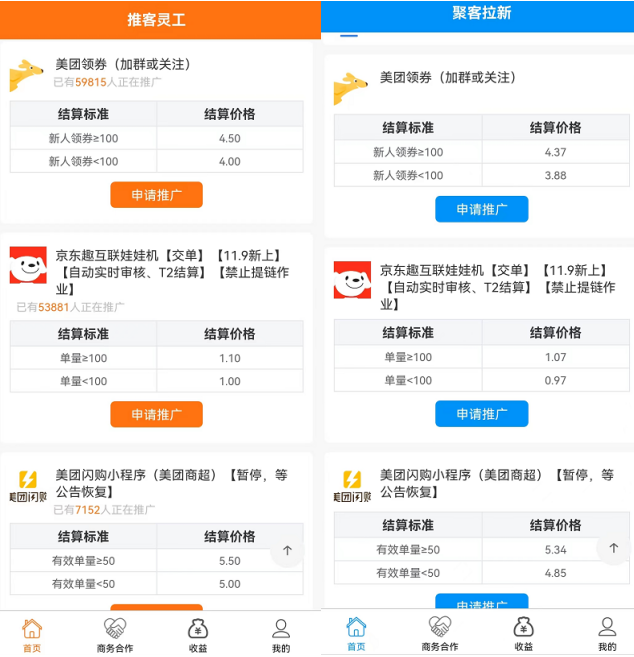 不过刚进去,我就感到有点诧异,怎么界面那么熟悉,这不跟【推客灵工】一样吗?简直就是换皮产品,就像我们打网络手游经常碰到的换皮怪物,除了颜色不同什么都一样!