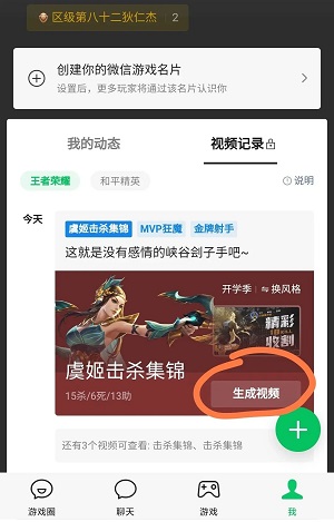 这项目不需要自己做视频,打游戏的同时,系统会记录你的高光时刻,比如说三杀四杀,或者有打得很好的时候,系统会自己生成视频,你只需要一键上传就行。