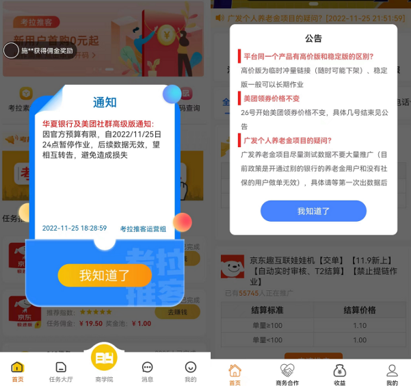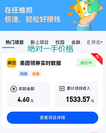 美团领券任务目前是最起码会持续到12月底,就是还有一个月的时间,足够大家继续挣钱了!某些平台确实可能下架了,只能说是渠道方实力原因,比如【任推邦】这边最起码还有1个月以上,而且价格长期是所有渠道最高的(因为这里做的人最多自然可以拿到更高价格)