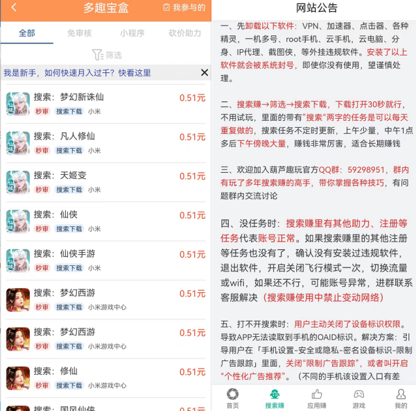 青出于蓝而胜于蓝,多趣宝盒搜索任务单价比UU堂还是稍高5%左右(不排除后期价格同步),另外提现门槛低至1元,而且邀请收益更高、软件UI设计也更高级,估计以后做的人会越来越多!强力推荐!