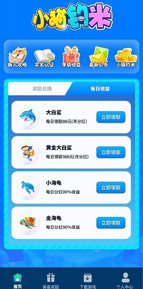 小猫钓米app,是一款类似【西游抗米】的手机赚钱游戏,玩法较为独特,将钓鱼和搬砖相结合,每日免费领取鱼饵,钓到鱼儿直接兑换现金,提现无任何门槛。西游抗米红利期已过,现在上车已经晚了,大家可耐心等待小猫钓鱼,预计12.7号上线,收藏本页面,第一时间发布注册首码。