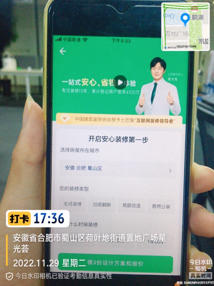 2.用户领取方案页水印相机照片,照片必须包含日期时间 地点,建议统一使用今日水印相机如图模板,甲方需要严格审核。