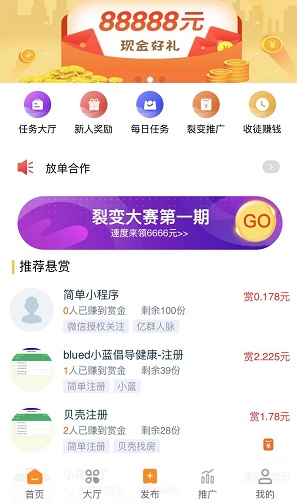 小桔悬赏app是近期上线的一个悬赏任务平台,是之前本站力推的苹果试玩平台“小桔试玩”公司开发运营的。小桔悬赏平台福利比较多,不管是薅羊毛还是做推广,或者发布任务都算不错的选择。