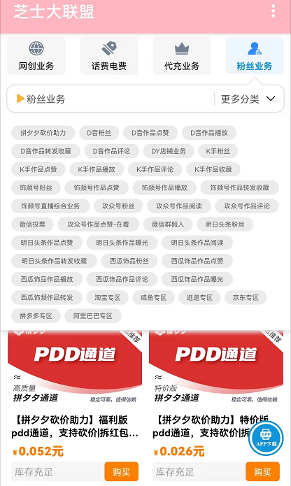 粉丝业务,简单说就是各方社交软件的粉丝增值服务,比如抖音、快手、知乎、微博、小红书、哔哩哔哩之类的,关注、点赞、评论等服务,这里有对应服务功能并且全网价格更高!