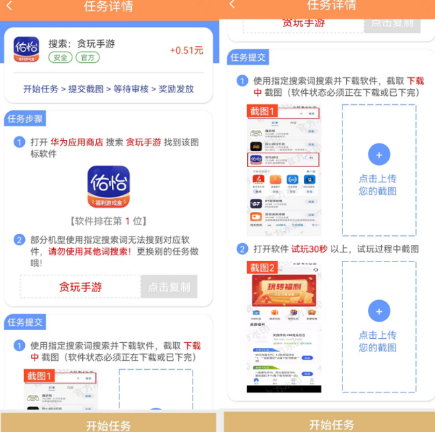 进入【搜索赚】找到任务,辅助关键词,认准软件图标;到应用市场找到对应软件下载,然后打开(但无需注册)30秒截图,即可提交任务!