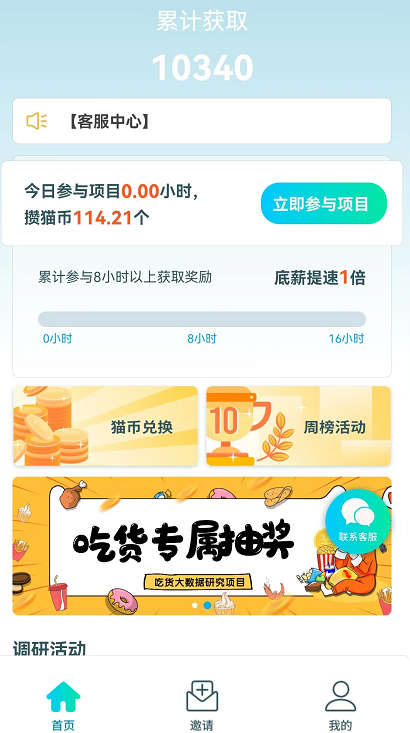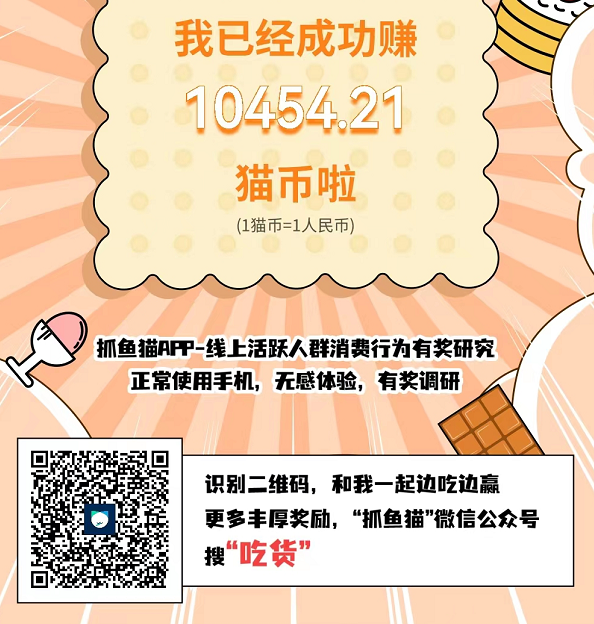 抓鱼猫开启无障碍之后,每天8小时跟16小时可以获得一次收益,注意连续挂机时长越久,可以获得收益倍率提升,比如连续挂机48小时,之后就是长期200%收益提升;前期没提升倍率或者没有每天挂机够16小时收益是较低的,所以要耐心挂机,2-3天之后收益就会达到峰值(平台有吃货调研、美妆调研、z世代调研等多个模式,符合条件尽量参与会提升收益)