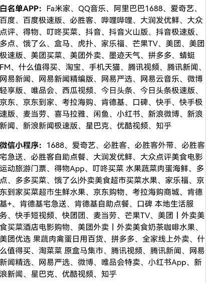 除此之外,平台作为调研挂机软件,本身有一定挂机的要求,简单说就是我们每天尽量使用下面白名单软件3款或者以上(但不要刻意打开放着,可以检测出来的),其实道理很简单我们必须给人家提供电商相关调研价值,才可能有长期的佣金收益,你的手机设备如果没有调研价值没有数据,自然平台不会让你参与,其实不会很难毕竟白名单软件很多!
