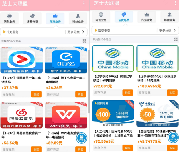 目前芝士大联盟有三网移动、联通、电信充值优惠,其中最低84折确实存在,不过是贵州专属的;其他充值优惠在9折上下,其实已经非常便宜!当然,这种9折左右的充值基本是慢充,大概半天到一天左右到账