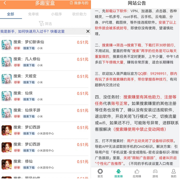 3、理论上每天可以重复操作,但不能几个搜素赚钱软件一起做(多趣宝盒是价格最高的一个)