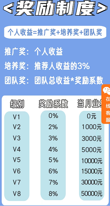 团队制度算是比较不错的,无限级差模式,根据团队业绩区分级别,可以拿到整个团队级差的利润,这个模式优势在于所有人价格是一样的,劣势在于整体价格不算很突出。
