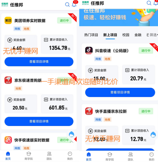 推荐原因:最优质的地推赚钱项目、任务非常丰富价格高、数据审核稳定不扣量,永久0门槛提现0手续费