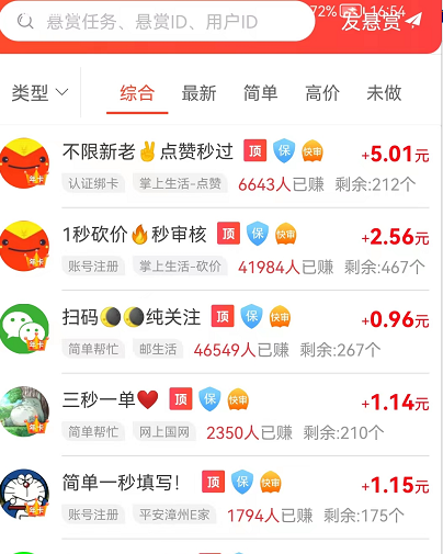 赏帮赚目前有效用户已经超过500万人,并且平台一直体验良好而且奖励佣金非常高,所以我们可以看到全网分享推广这款软件的站长大V数量非常多,这个平台保守估计日活跃用户有几十万人,而每天新上架不重复的任务也千款以上,所以肯定是做不完的!绝对是长期值得操作的低保项目!