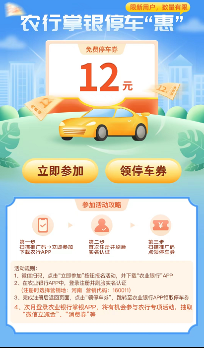 4、完成注册后返回页面,点击“领停车券”,跳转至农业银行APP领取停车券。