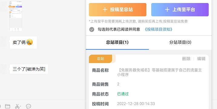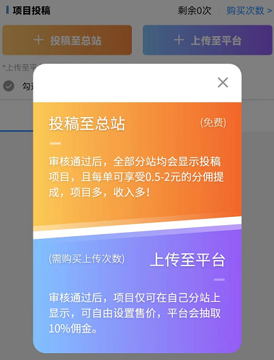 首先我们需要选择投稿到自己分站或者投稿总站,简单说投稿到自己分站不需要审核,但是只有你自己可以销售,随便设置价格平台会抽取10%的利润,一般来说我们都是投稿到总站;投稿总站需要审核,根据网友反馈一般需要弄个视频教程,否则基本审核不会通过,然后全网所有有用户都可以购买或者销售你的投稿资源,每次我们可以获得0.5-2元的提成,如果资源很优质,购买的人就会多,那我们纯粹投稿都能每天躺赚!