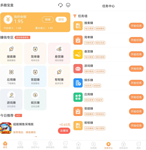其实搜索搜索赚钱我们可以理解为SEO类似的原理,我们帮助软件SEO优化,提供真实流量价值,所以平台才会给我们奖励,全程无需投资不涉及个人敏感资料和资金安全,无疑是安全靠谱的!而经过测试,从任务单价、提现门槛、推广收益等多方面对比,这类项目目前最优质的是多趣宝盒APP