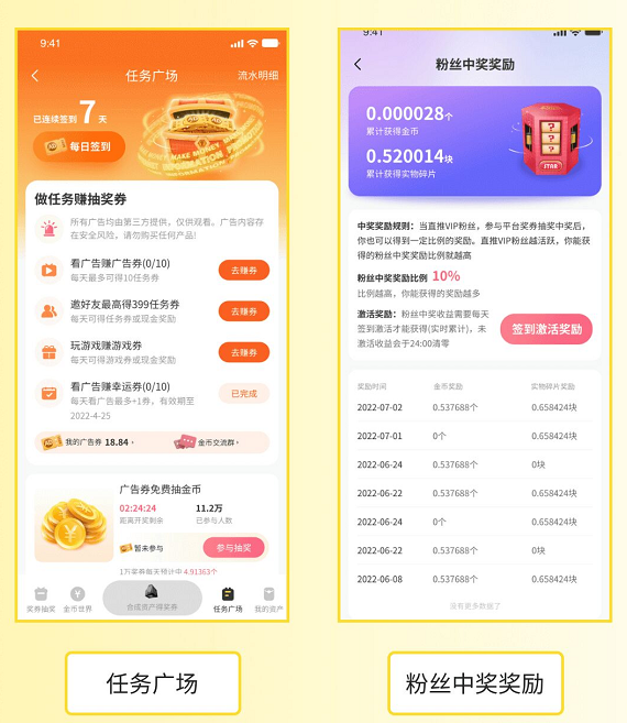渠道奖励:赠送沙和尚,参与大盘分币;获得更高的现金奖励和任务券奖励;粉丝观看广告获得更多广告券和一定现金奖励;